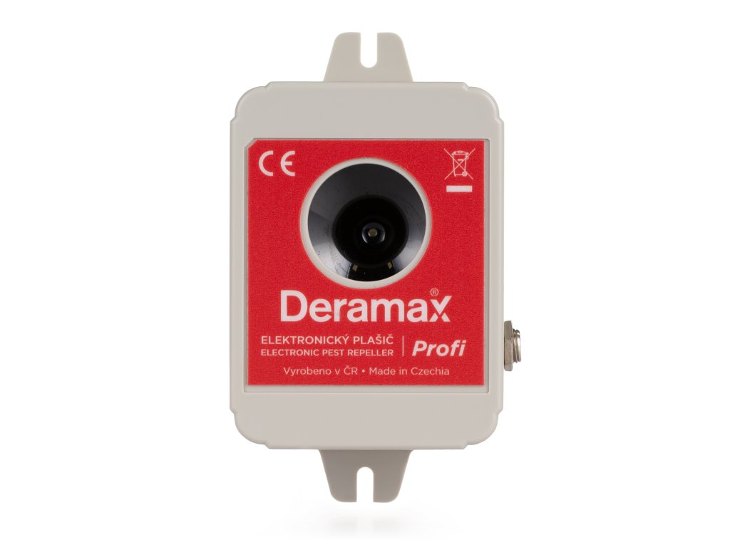 Plašič Deramax - Profi sa používa na ochranu vnútorných a vonkajších priestorov pred kunami či hlodavcami. Zariadenie je pre človeka úplne bezpečné a nehlučné. Škodcovia sú trvalo obťažovaní ultrazvukovými signálmi plašiča a v krátkom čase opúšťajú chránený priestor. Prevádzka zariadenia je šetrná k životnému prostrediu bez použitia chemikálií.