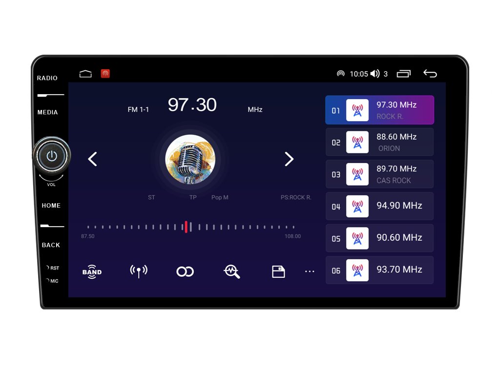 QLED Displej 2DIN autorádia je zameraný na dokonalé ovládanie s maximálnou prehľadnosťou. Obraz rádia je v HD rozlíšení s uhlopriečkou neuveriteľných 10,1 palca. Vďaka veľkosti obrazovky má autorádio väčší displej ako väčšina bežne používaných autorádií. Autorádio sa ľahko ovláda jemným dotykom na displeji, ktorý je veľmi citlivý aj pri stlačení ikony v rukaviciach.