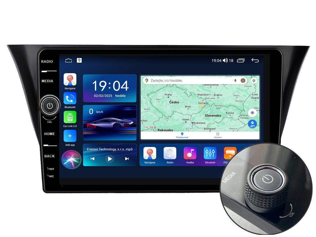 2DIN autorádio Everest EVE70 pre IVECO Daily stanovuje nové štandardy vo svete multimediálnych technológií. Na prvý pohľad zaujme 10,1 palcovou QLED obrazovkou s neuveriteľným rozlíšením 1280 x 800. Môžete na nej sledovať videá a prezerať fotografie s podporou aplikácií pre systém Android. Stabilný software s 8-jadrovým procesorom a 6 GB RAM zaručuje špičkový výkon a plynulý chod aplikácií. Náročný poslucháč ocení funkciu DSP (digitálneho signálového procesora), ktorá mnohonásobne zvyšuje kvalitu reprodukcie. Pomocou 4G modulu sa z vášho autorádia stane smartfón, z ktorého môžete posielať SMS správy, používať online GPS navigáciu s aktuálnou dopravnou situáciou alebo využívať ďalšie užitočné funkcie. Váš mobilný telefón zostane už navždy vo vrecku vďaka bezdrôtovej funkcii CarPlay a Android Auto. Vďaka systému Android 15 budete mať v aute kompletné multimediálne centrum plné funkcií a aplikácií. Pohľad z parkovacej kamery vám umožní bezpečne a nerušene cúvať. Autorádio ponúka výber z rôznych jazykov, medzi ktorými je aj preklad základnej časti systému do slovenčiny.