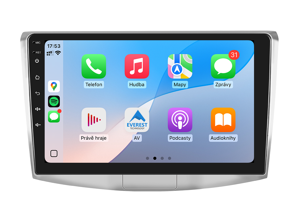 2DIN autorádio Everest EVT13 pre Volkswagen Passat B6, B7 alebo CC stanovuje nové štandardy vo svete multimediálnych technológií. Na prvý pohľad zaujme 10,1 palcovou QLED obrazovkou s neuveriteľným rozlíšením 1280 x 800. Môžete na nej sledovať videá a prezerať fotografie s podporou aplikácií pre systém Android. Stabilný software s 8-jadrovým procesorom a 6 GB RAM zaručuje špičkový výkon a plynulý chod aplikácií. Náročný poslucháč ocení funkciu DSP (digitálneho signálového procesora), ktorá mnohonásobne zvyšuje kvalitu reprodukcie. Pomocou 4G modulu sa z vášho autorádia stane smartfón, z ktorého môžete posielať SMS správy, používať online GPS navigáciu s aktuálnou dopravnou situáciou alebo využívať ďalšie užitočné funkcie. Váš mobilný telefón zostane už navždy vo vrecku vďaka bezdrôtovej funkcii CarPlay a Android Auto. Vďaka systému Android 15 budete mať v aute kompletné multimediálne centrum plné funkcií a aplikácií. Pohľad z parkovacej kamery vám umožní bezpečne a nerušene cúvať. Autorádio ponúka výber z rôznych jazykov, medzi ktorými je aj preklad základnej časti systému do slovenčiny.