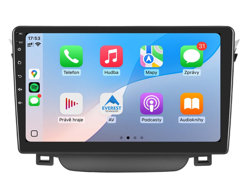 2DIN autorádio Everest EVT29 pre Hyundai i30 stanovuje nové štandardy vo svete multimediálnych technológií. Na prvý pohľad zaujme 9 palcovou QLED obrazovkou s neuveriteľným rozlíšením 1280 x 800. Môžete na nej sledovať videá a prezerať fotografie s podporou aplikácií pre systém Android. Stabilný software s 8-jadrovým procesorom a 6 GB RAM zaručuje špičkový výkon a plynulý chod aplikácií. Náročný poslucháč ocení funkciu DSP (digitálneho signálového procesora), ktorá mnohonásobne zvyšuje kvalitu reprodukcie. Pomocou 4G modulu sa z vášho autorádia stane smartfón, z ktorého môžete posielať SMS správy, používať online GPS navigáciu s aktuálnou dopravnou situáciou alebo využívať ďalšie užitočné funkcie. Váš mobilný telefón zostane už navždy vo vrecku vďaka bezdrôtovej funkcii CarPlay a Android Auto. Vďaka systému Android 15 budete mať v aute kompletné multimediálne centrum plné funkcií a aplikácií. Pohľad z parkovacej kamery vám umožní bezpečne a nerušene cúvať. Autorádio ponúka výber z rôznych jazykov, medzi ktorými je aj preklad základnej časti systému do slovenčiny.