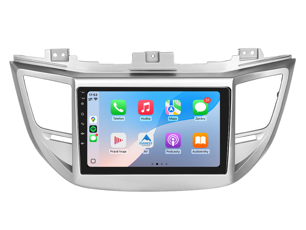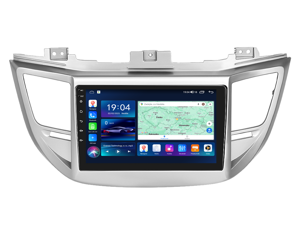 2DIN autorádio Everest EVT35 pre Hyundai Tucson stanovuje nové štandardy vo svete multimediálnych technológií. Na prvý pohľad zaujme 9 palcovou QLED obrazovkou s neuveriteľným rozlíšením 1280 x 800. Môžete na nej sledovať videá a prezerať fotografie s podporou aplikácií pre systém Android. Stabilný software s 8-jadrovým procesorom a 6 GB RAM zaručuje špičkový výkon a plynulý chod aplikácií. Náročný poslucháč ocení funkciu DSP (digitálneho signálového procesora), ktorá mnohonásobne zvyšuje kvalitu reprodukcie. Pomocou 4G modulu sa z vášho autorádia stane smartfón, z ktorého môžete posielať SMS správy, používať online GPS navigáciu s aktuálnou dopravnou situáciou alebo využívať ďalšie užitočné funkcie. Váš mobilný telefón zostane už navždy vo vrecku vďaka bezdrôtovej funkcii CarPlay a Android Auto. Vďaka systému Android 15 budete mať v aute kompletné multimediálne centrum plné funkcií a aplikácií. Pohľad z parkovacej kamery vám umožní bezpečne a nerušene cúvať. Autorádio ponúka výber z rôznych jazykov, medzi ktorými je aj preklad základnej časti systému do slovenčiny.
