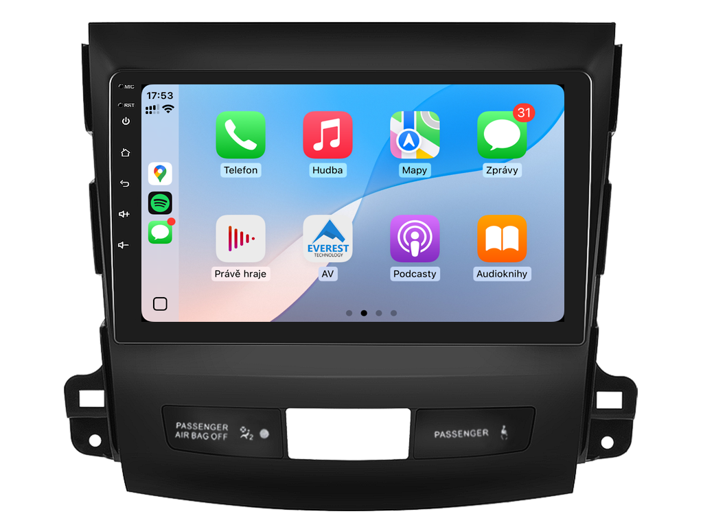 2DIN autorádio Everest EVT37 pre Mitsubishi Outlander II / Citroen C-Crosser / Peugeot 4007 stanovuje nové štandardy vo svete multimediálnych technológií. Na prvý pohľad zaujme 9 palcovou QLED obrazovkou s neuveriteľným rozlíšením 1280 x 800. Môžete na nej sledovať videá a prezerať fotografie s podporou aplikácií pre systém Android. Stabilný software s 8-jadrovým procesorom a 6 GB RAM zaručuje špičkový výkon a plynulý chod aplikácií. Náročný poslucháč ocení funkciu DSP (digitálneho signálového procesora), ktorá mnohonásobne zvyšuje kvalitu reprodukcie. Pomocou 4G modulu sa z vášho autorádia stane smartfón, z ktorého môžete posielať SMS správy, používať online GPS navigáciu s aktuálnou dopravnou situáciou alebo využívať ďalšie užitočné funkcie. Váš mobilný telefón zostane už navždy vo vrecku vďaka bezdrôtovej funkcii CarPlay a Android Auto. Vďaka systému Android 15 budete mať v aute kompletné multimediálne centrum plné funkcií a aplikácií. Pohľad z parkovacej kamery vám umožní bezpečne a nerušene cúvať. Autorádio ponúka výber z rôznych jazykov, medzi ktorými je aj preklad základnej časti systému do slovenčiny.
