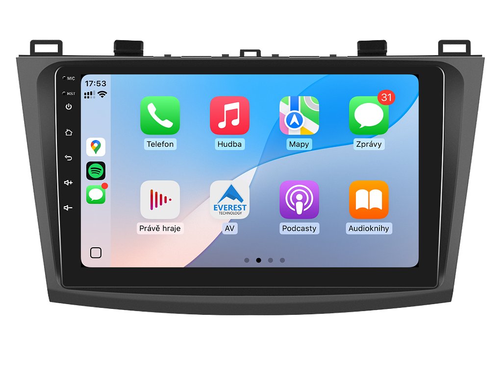 S 2DIN autorádiom Isudar T75-IEV100 QLED pre Mazda 3 máte svet hudby, zábavy a informácií doslova na dosah ruky. Hlavnou prednosťou je nepochybne prehľadná 9-palcová obrazovka QLED s neuveriteľným rozlíšením 1280 x 720. Môžete na nej sledovať videá a prezerať fotografie s podporou aplikácií pre systém Android. 8-jadrový procesor a 8 GB pamäte RAM zaisťujú špičkový výkon a plynulý chod aplikácií. Náročný poslucháč ocení funkciu DSP (digitálneho signálového procesora), ktorá mnohonásobne zvyšuje kvalitu reprodukcie. Pomocou 4G modulu sa z vášho autorádia stane smartfón, z ktorého môžete posielať SMS správy, používať online GPS navigáciu s aktuálnou dopravnou situáciou alebo využívať ďalšie užitočné funkcie. Váš mobilný telefón zostane už navždy vo vrecku vďaka funkcii CarPlay a Android Auto. Vďaka systému Android 14 budete mať v aute kompletné multimediálne centrum plné funkcií a aplikácií. Pohľad z parkovacej kamery vám umožní bezpečne a nerušene cúvať. Autorádio ponúka výber z rôznych jazykov, medzi ktorými je aj preklad základnej časti systému do slovenčiny.