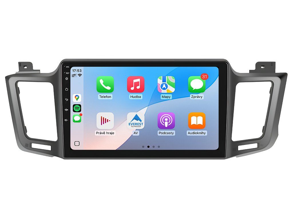 S 2DIN autorádiom Isudar T75-IEV138 QLED pre Toyota RAV4 XA40 máte svet hudby, zábavy a informácií doslova na dosah ruky. Hlavnou prednosťou je nepochybne prehľadná 10,1-palcová obrazovka QLED s neuveriteľným rozlíšením 1280 x 720. Môžete na nej sledovať videá a prezerať fotografie s podporou aplikácií pre systém Android. 8-jadrový procesor a 8 GB pamäte RAM zaisťujú špičkový výkon a plynulý chod aplikácií. Náročný poslucháč ocení funkciu DSP (digitálneho signálového procesora), ktorá mnohonásobne zvyšuje kvalitu reprodukcie. Pomocou 4G modulu sa z vášho autorádia stane smartfón, z ktorého môžete posielať SMS správy, používať online GPS navigáciu s aktuálnou dopravnou situáciou alebo využívať ďalšie užitočné funkcie. Váš mobilný telefón zostane už navždy vo vrecku vďaka funkcii CarPlay a Android Auto. Vďaka systému Android 14 budete mať v aute kompletné multimediálne centrum plné funkcií a aplikácií. Pohľad z parkovacej kamery vám umožní bezpečne a nerušene cúvať. Autorádio ponúka výber z rôznych jazykov, medzi ktorými je aj preklad základnej časti systému do slovenčiny.