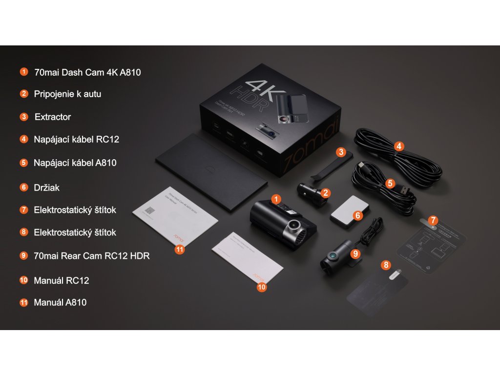 Kamera do auta 70mai Dash Cam 4K A810S + Rear Cam RC24 HDR set