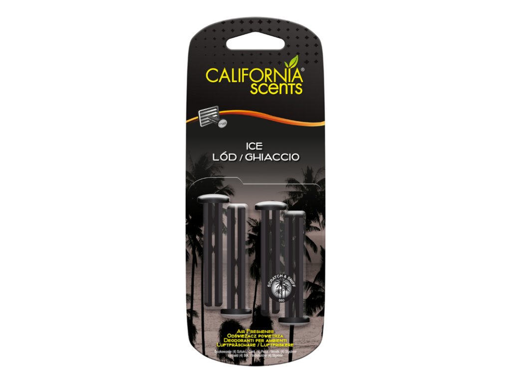 Vône California Scents sú osvedčené osviežovače vzduchu s koncentrovanou a jemnou vôňou. Vône sú 100 % organické. Stačí umiestniť tyčinku Vent Stick do vetracej mriežky a môžete si užívať osviežujúcu vôňu celé týždne. Vďaka decentnému vzhľadu Vent Stick bude vzhľad vášho interiéru dokonalý. Všetky výrobky California Scents sú "made in California"!