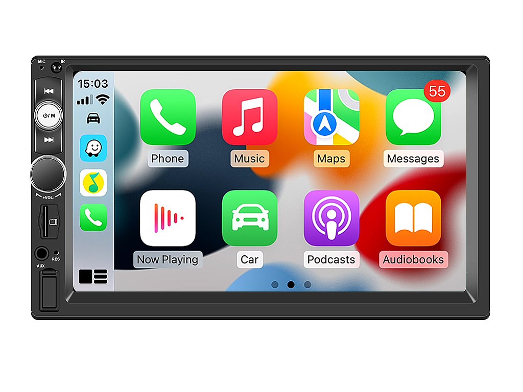 Užívajte si moderné funkcie CarPlay a AndroidAuto v 2DIN autorádiu 7515B. Tieto nadčasové technológie zabezpečujú bezproblémové zrkadlenie a ovládanie telefónu na displeji autorádia. Na prehľadnom 7-palcovom dotykovom displeji môžete prehrávať filmy, čo váš spolujazdec určite ocení na dlhých cestách. Toto zariadenie s výkonom 4 x 45 W umožňuje počúvať aj klasické FM rádio, skladby z USB disku a skladby uložené v mobilnom telefóne. Funkcia Bluetooth Vám zaistí pohodlné a bezpečné telefonovanie pomocou Handsfree. Ak budete potrebovať ukázať správny smer, určite oceníte GPS navigáciu, ktorá sa vysiela z mobilného telefónu priamo na obrazovku 2DIN autorádia. Predný AUX In vstup, USB port a slot na SD karty zaručuje bezproblémové pripojenie väčšiny externých zariadení. Pohľad z parkovacej kamery Vám zaistí bezproblémové parkovanie.