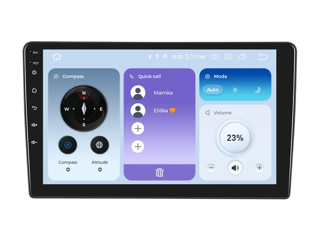 Obrovský displej autorádia je zameraný na dokonalosť a maximálnu prehľadnosť počas cestovania. Rádio je v HD rozlíšení s uhlopriečkou neuveriteľných 9 palca, čo je v prepočte 23 cm. Vďaka veľkosti obrazovky sa autorádio môže pochváliť väčším displejom ako pôvodný model autorádia. Zariadenie sa ľahko ovláda jemným dotykom na displeji, ktorý je veľmi citlivý aj pri stlačení ikony v rukaviciach.