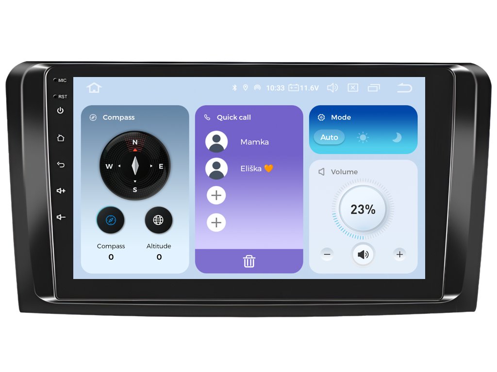 S autorádiom Xtrons IQP-XEV65 pre Mercedes-Benz ML alebo GL sa vaša cesta autom zmení na neobyčajný zážitok. Najvýraznejšou prednosťou tohto rádia je veľký a prehľadný dotykový displej s neuveriteľnou veľkosťou 9 palca a LCD IPS technológiou zobrazenia. Pre predstavu, ide o veľkosť približne 26 cm. Vďaka prehľadnej obrazovke budete mať všetky ikony na dosah ruky. Autorádio sa môže pochváliť 8 GB RAM a dostatočne veľkou vnútornou pamäťou 256 GB. O nezabudnuteľný zvukový zážitok sa postará vylepšený zvukový ekvalizér s modernou funkciou DSP (Digital signal processor), ktorá mnohonásobne zvýši kvalitu prehrávanej hudby. Vďaka 4G modulu sa môžete stať majiteľom autorádia, ktoré funguje aj ako smartfón a umožňuje používať online GPS navigáciu a ďalšie funkcie. Aplikácie Apple CarPlay a Android Auto vás určite oslnia bezproblémovým prepojením autorádia s mobilným telefónom. Pomocou tejto šikovnej funkcie môžete hravo ovládať telefón na obrazovke autorádia. Funkcia Bluetooth vám umožní pohodlne a bezpečne telefonovať v režime Handsfree. Ak niekedy nebudete vedieť nájsť správnu cestu, použite zabudovaný GPS modul, ktorý vás navedie správnym smerom. Svoju obľúbenú GPS navigáciu si môžete stiahnuť z Google obchodu. Operačný systém Android 14 sa postará o ovládanie populárnych aplikácií. Spolucestujúcich môžete na dlhých cestách zabaviť dobrým filmom alebo videom. Určite na nich zapôsobí obrazovka s HD rozlíšením. Na bezpečné cúvanie môžete využiť jednoduché pripojenie autorádia k parkovacej kamere. Autorádio ponúka výber z rôznych jazykov, medzi ktorými je aj preklad základnej časti systému do slovenčiny.